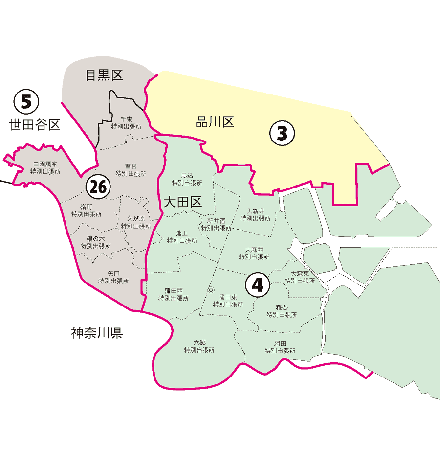 第4区に属しない区域(以下の地域) 大田区嶺町特別出張所管内 |