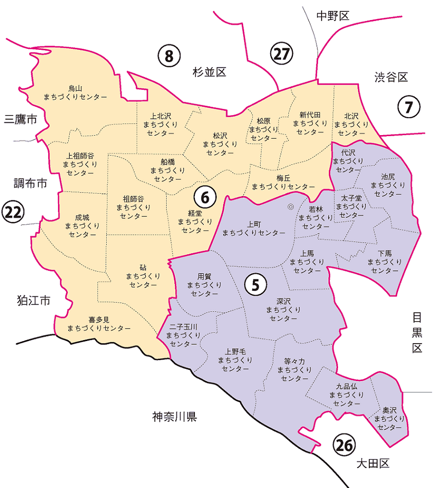 第5区に属しない区域(以下の地域) 経堂まちづくりセンター管内(宮坂1丁目~3丁目、桜丘1丁目~5丁目、経堂1丁目~5丁目) |